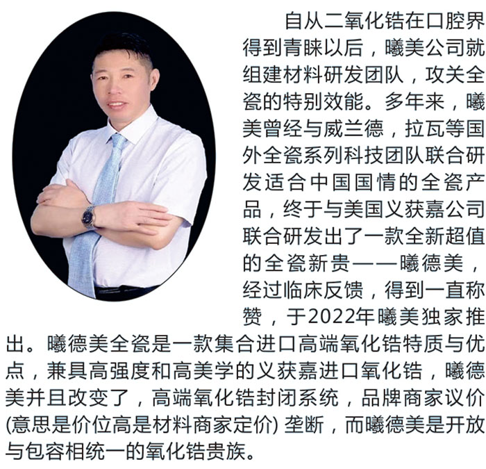 曦德美全瓷是一款集合进口高端氧化锆特质与优点,兼具高强度和高美学的义获嘉进口氧化锆,曦德美并且改变了,高端氧化锆封闭系统,品牌商家议价(意思是价位高是材料商家定价)垄断,而曦德美是开放与包容相统一的氧化锆贵族。