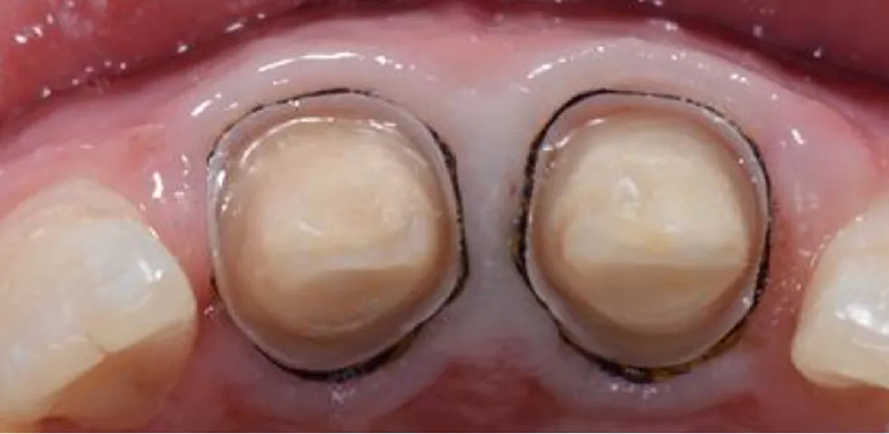 2、预备龈下刃状边缘,要求360°深度一致,牙龈未被伤及,无红肿糜烂的情况。